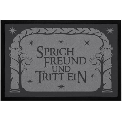 Auf seiner Reise nach Mordor muss Frodo das ein oder andere Hindernis überwinden. Eines von ihnen ist die versteckte Tür von Durin, die in das Reich der Zwerge führt. Diese Tür öffnet sich nur, wenn das Rätsel ihrer Inschrift, „Sprich Freund und tritt ein“, gelöst wird. Waschechte "Herr der Ringe"-Fans wissen, dass für die Lösung und um Eintritt zu erhalten das elbische Wort „mellon“, also Freund, gesprochen werden muss. Werden die Besucher die Lösung auch herausfinden? Die robuste, langlebige und farbintensive Matte ist natürlich auch äußerst praktisch, um den Fußboden in der Wohnung sauber und trocken zu halten. Die Fußmatte ist rutschfest und ein tolles Geschenk für alle "Herr der Ringe"-Fans, zum Beispiel zur Einweihung einer neuen Wohnung.