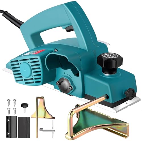 EypiNS Elektrohobel Handhobel, 800W 13000 U/min, Hobelbreite 82 mm, Spantiefe 2.0 mm, tragbar Holzhobel inkl. Steckschlüssel für Holzbearbeitung