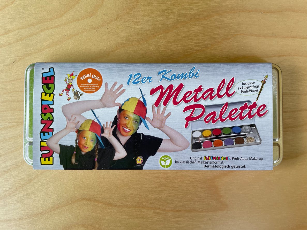 Kinderschminke ist normalerweise auf Wasserbasis und damit auch wesentlich hautverträglicher. Du findest sie in Form von Stiften, als Einzelfarbe in Tuben oder Dosen oder gleich als ganze Make-up-Palette mit unterschiedlichsten Farbzusammenstellungen. Die Farben sind in der Regel gut deckend und es gibt sie abhängig vom Hersteller zusätzlich in den Farbnuancen matt oder glänzend/metallic. Mit Neonfarben solltest du vorsichtiger umgehen, weil sie häufig weniger gut verträglich und damit weniger gut geeignet sind.