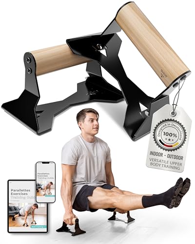PULLUP & DIP Liegestützgriffe mit ergonomischem Holz Griff und hochbelastbarem Stahl - Rutschfeste Push-Up bars Handstandbarren für Krafttraining und Calisthenics