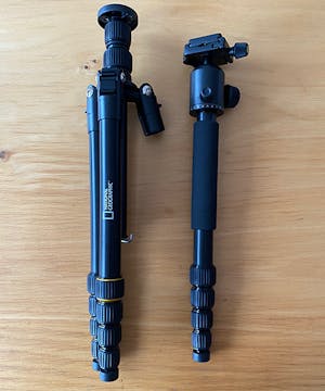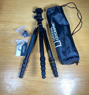 Das National Geographic Reisetativ Set NGTR002T ist in schwarzem Aluminium erhältlich. Das Stativ ist sehr stabil verarbeitet und kommt einer schwarzen Schutzhülle zum Umhängen, einem Aluminium Kugelkopf mit Kamera Schnell-Verschluss.
