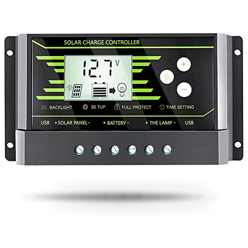 Hier erhältst du einen kleinen, aber doch leistungsstarken Solarladeregler, der einen maximalen Ladestrom von zehn Ampere aufnehmen kann. Über die zwei USB-Ausgänge lassen sich zum Beispiel Ladegeräte für Smartphone, Musikplayer etc. einfach anschließen. Des Weiteren wurde für mehr Sicherheit in das Gerät ein Kurzschluss-, Leerlauf-, Rückwärts- und Überlastungsschutz eingebaut. Darüber hinaus erzeugt der Solarladeregler eine geringe Wärmeerzeugung und punktet somit mit einer geringen Ausfallrate. Über das große Display lassen sich verschiedene Daten leicht ablesen und einstellen.
