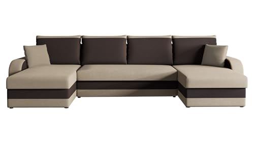Stella Trading, Wohnlandschaft in U-Form und erweiterbar zum Sofa mit Schlaffunktion und praktischem Bettkasten